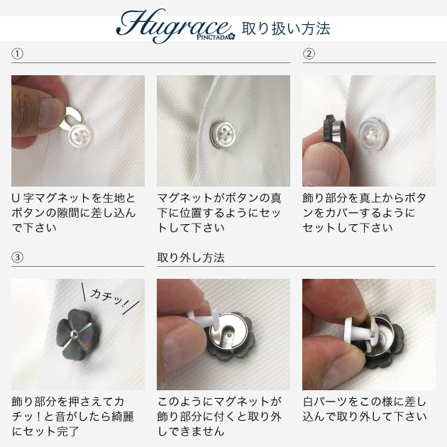 ・本製品は、シャツ、ブラウスのボタンに着用するアクセサリーです。
