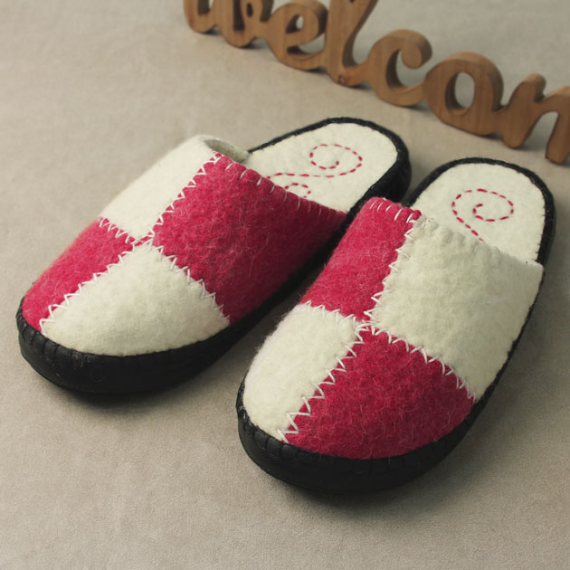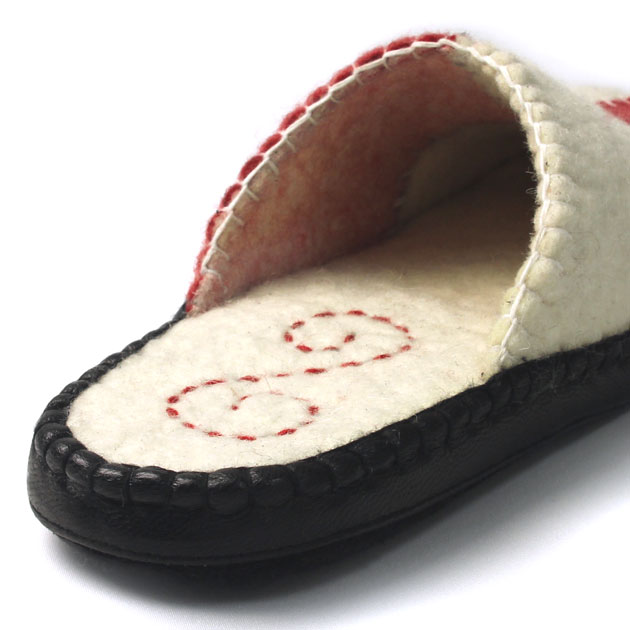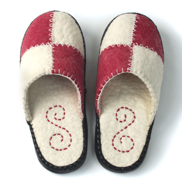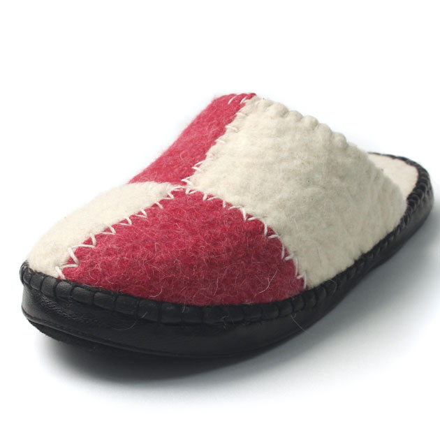 レッドホワイト羊毛フェルトルームスリッパ(レディース)
