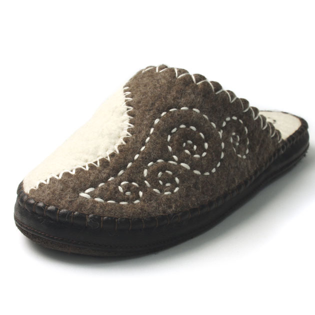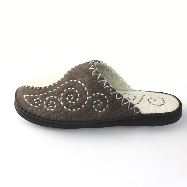 ブラウンホワイト羊毛フェルトルームスリッパ(メンズ)