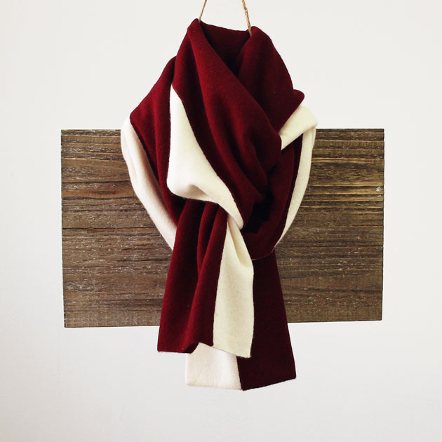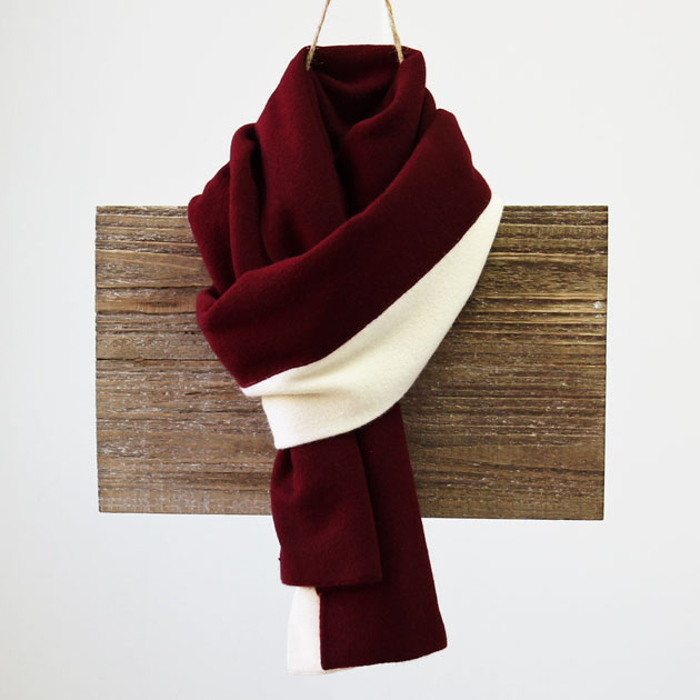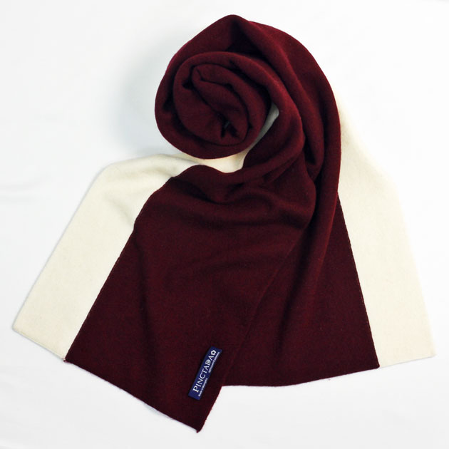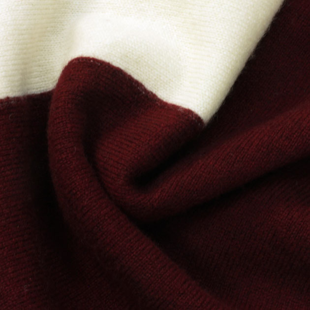 ストライプカシミヤ100%マフラー(バーガンディ・ホワイト)