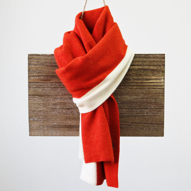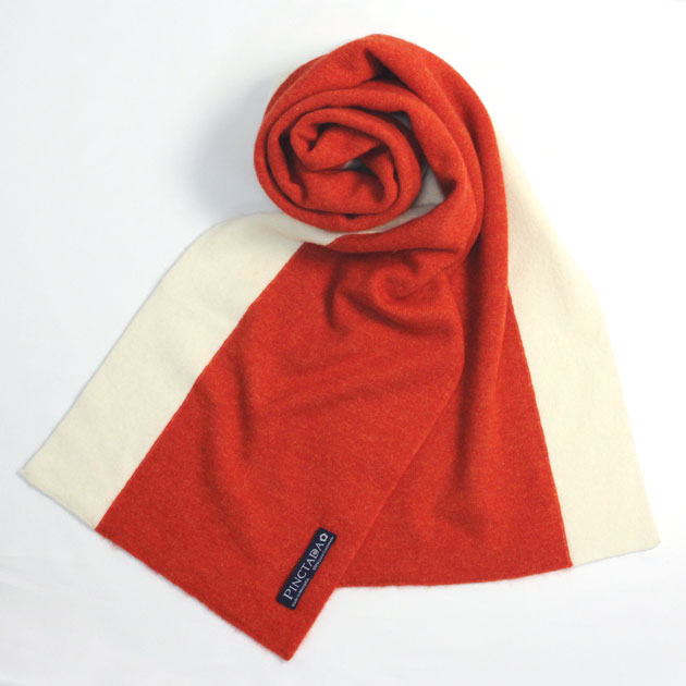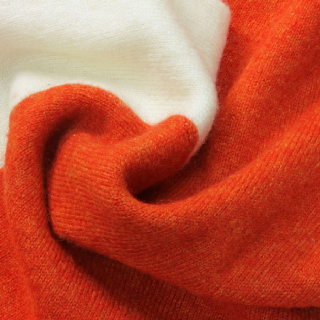 ストライプカシミヤ100%マフラー(オレンジ・ホワイト)