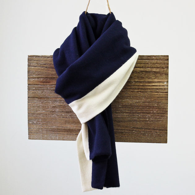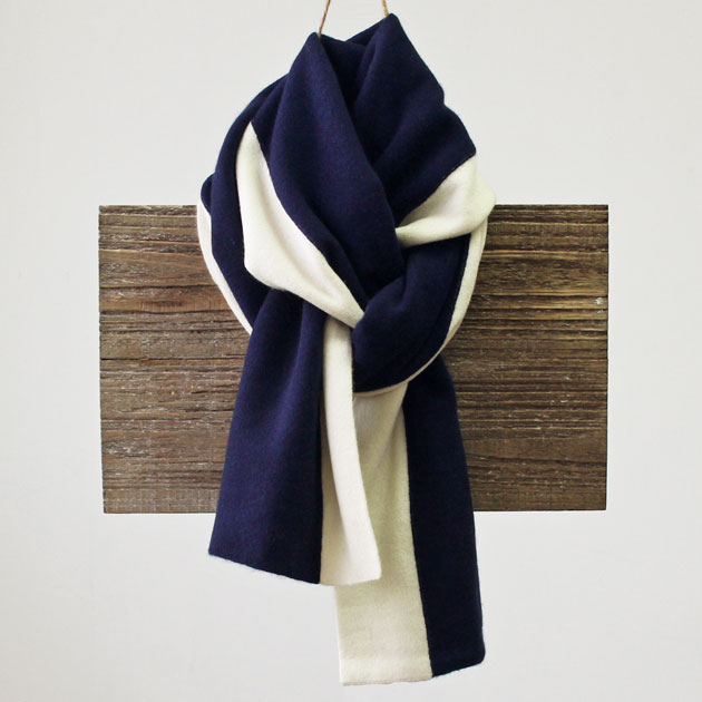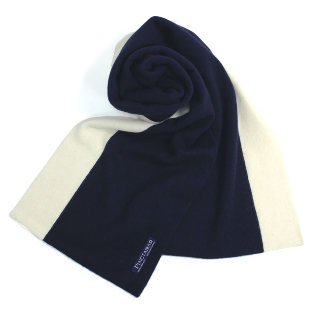ストライプカシミヤ100%マフラー(ネイビー・ホワイト)