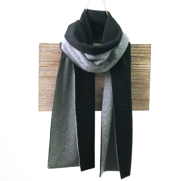 グレー×ブラックリバーシブル両面配色100%カシミヤマフラー。