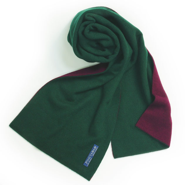 リバーシブルカシミヤマフラー(グリーン&バーガンディ)