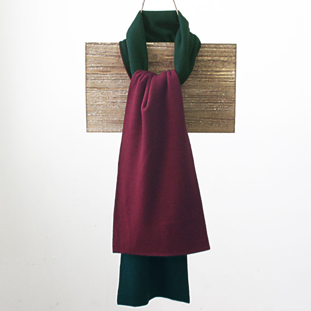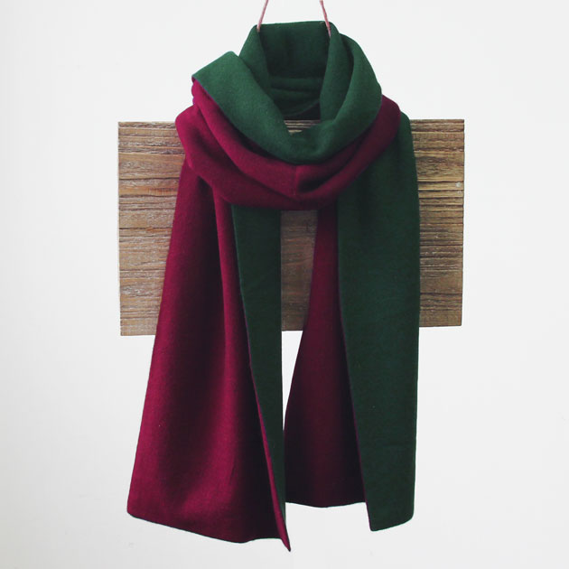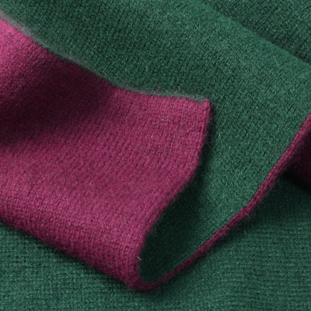 グリーン×バーガンディリバーシブル両面配色100%カシミヤマフラー。