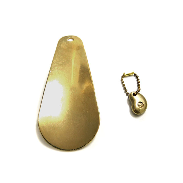 真鍮の鍛造製法で制作されたシューホーンです。長年使用すると全体にエイジングしていきますが、踵がすれる部分は豊の輝きを保ち続けます。そのグラデーションはまさに真鍮ならでは。