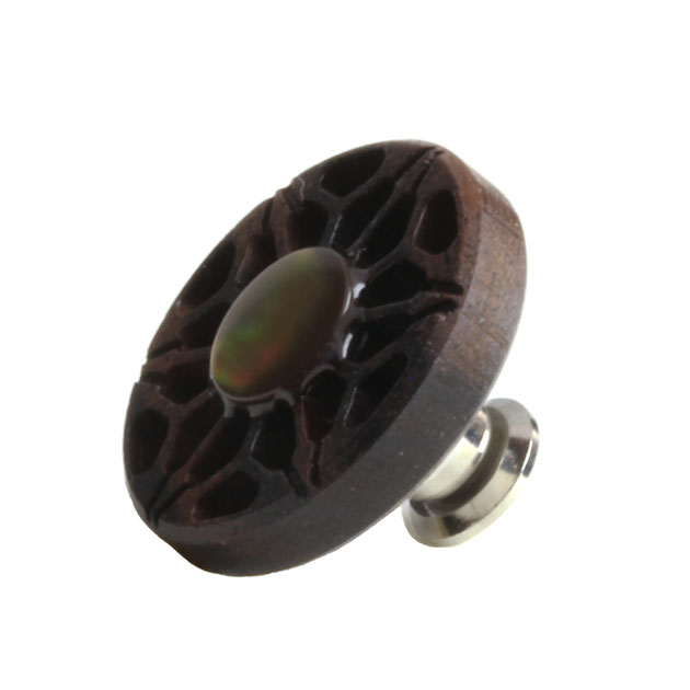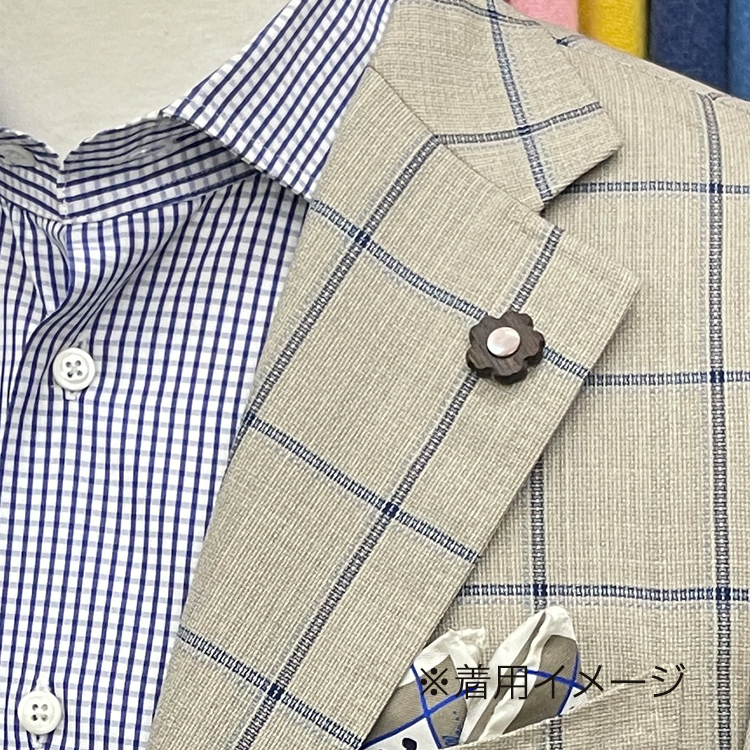 木材の中でも耐久性に優れた黒檀(コクタン)をベースに、茶蝶貝パーツを合わせたピンズです。