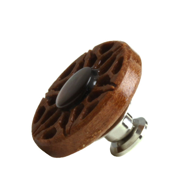 赤褐色が味わい深い木材・南洋桜をベースに、黒蝶貝パーツを合わせたピンズです。