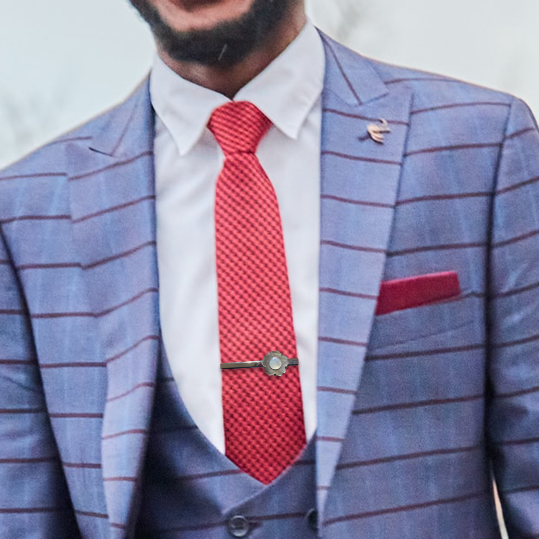 黒蝶貝のセンターに白蝶貝のパーツを組み合わせました。スーツのマストアイテムであるネクタイピン。実用的はもちろんのこと、ワンポイントのおしゃれに最適です。