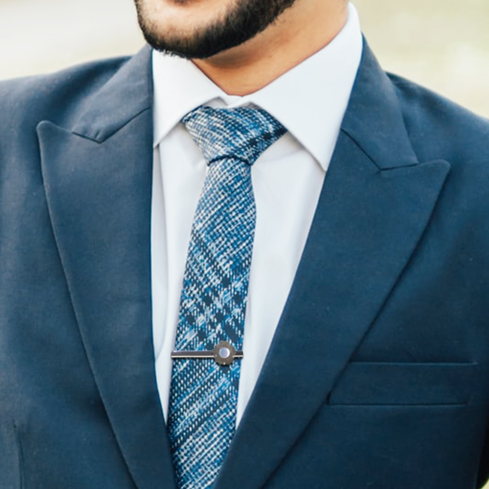 白蝶貝のセンターに黒蝶貝のパーツを組み合わせました。スーツのマストアイテムであるネクタイピン。実用的はもちろんのこと、ワンポイントのおしゃれに最適です。