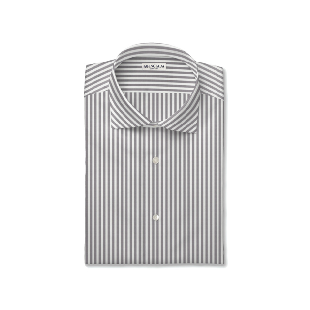 総サテンのグレーロンドンストライプ。ストライプの色がくっきりと出るのが特徴です。